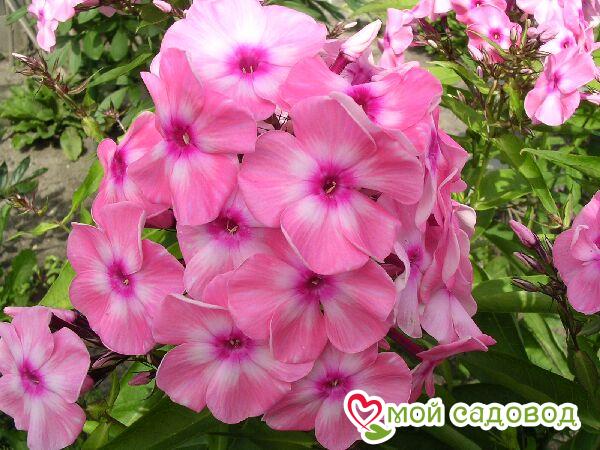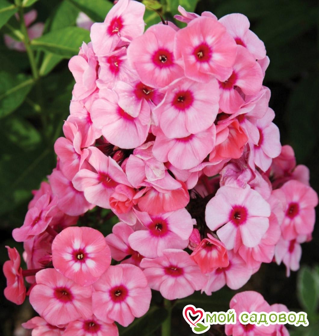 В высоту куст достигает 85 – 90 см. Побеги прочные и прямые, покрытые ярко-зеленой листвой. Цветок достигает в диаметре 3,7 см. Окрашен он в светло-розовый цвет, с насыщенно-малиновым колечком и белой звездой. Все вместе цветки собраны в плотные кистевидные соцветия. Они прочно крепятся на концах стеблей. Преимущество сорта – лепестки не выгорают даже на открытом солнце. Флоксы источают насыщенный приятный аромат.