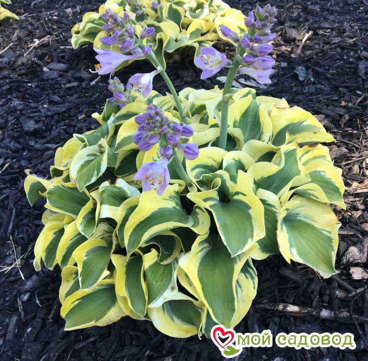 Читать далееОчаровательная маленькая хоста с невысокими темпами роста, высотой до 18-20 см и шириной около 30 см. Листья плотные, синевато-зеленые с желтоватой, постепенно светлеющей до кремового оттенка каймой, с волнистыми, немного закрученными краями. Цветет в июне-июле крупными сиреневыми цветами, украшенными фиолетовыми полосками, удивительно красиво гармонирующими с листвой. Купить саженцы хосты гибридной Мини Скирт стоит для украшения переднего края цветников и миксбордеров, альпинариев, рокариев, садовых дорожек, берегов водоема, сорт станет отличным дополнением растительной композиции с другими сортами хост, папоротниками, геранью, ирисами, примулами, бузульником. Сорт морозостоек, неприхотлив, устойчив к заболеваниям. Для посадки подойдет участок в полутени с утренними освещением, подойдет и кружевная тень под кронами деревьев. Почву хоста любит питательную, богатую органикой, увлажненную, дренированную. Уход за хостой сводится к поливам, внесению органических подкормок и удалению отцветших соцветий.