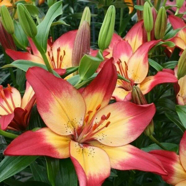 Лилия отличается высокой устойчивостью к морозам, грибковым заболеваниям. Высота растения достигает до 80 см. Стебли высокие, прямые, ярко-зеленые с густой листвой. Листики удлинённые, расположенные в поочередном порядке. Цветки крупные, насыщенные, розовые, имеющие оранжево-желтый центр, усыпанный крапинками, штрихами. Размножается любыми способами. Не имеет аромата. Отлично смотрится в одиночных, групповых, клумбовых посадках. Уход за лилиями включает в себя прополки, поливы, рыхления, подкормки, борьбу с болезнями и вредителями. Поливают лилии в период цветения, поддерживая почву в увлажненном состоянии. Чтобы избежать пересыхания и перегрева почву мульчируют перегноем или торфом слоем в 5-6 см. Лилии хорошо отзываются на подкормки. Первую подкормку проводят весной после схода снега, разбрасывая по поверхности почвы азотные удобрения. Во время бутонизации растения поливают растворенной в воде аммиачной селитрой, непосредственно перед цветением использую фосфорно-калийные удобрения в жидком виде, в конце лета, но не позднее середины августа, лилии подкармливают фосфором и калием. Выращивать лилии на одном месте дольше 3-4 лет крайне нежелательно: луковица нарастает, становится рыхлой, растениям становится тесно по соседству. На 5 -6 год заметно снижается высота цветоноса, количество бутонов и значит, луковица истощена, а это может привести к заболеваниям и гибели растения. Осенью, когда надземная часть растения отмерла, стебель обрезают на высоте 15 см от поверхности почвы, гнездо выкапывают целиком, отделяют от материнской луковицы детки и высаживают их на доращивание. Саму материнскую луковицу пересаживают на новое место. В нашем интернет-магазине вы сможете купить Лилии Так же возможно вас заинтересуют Лилия-дерево Пурпл Принц и Лилия (ЛО-гибрид) Пинк Хевен