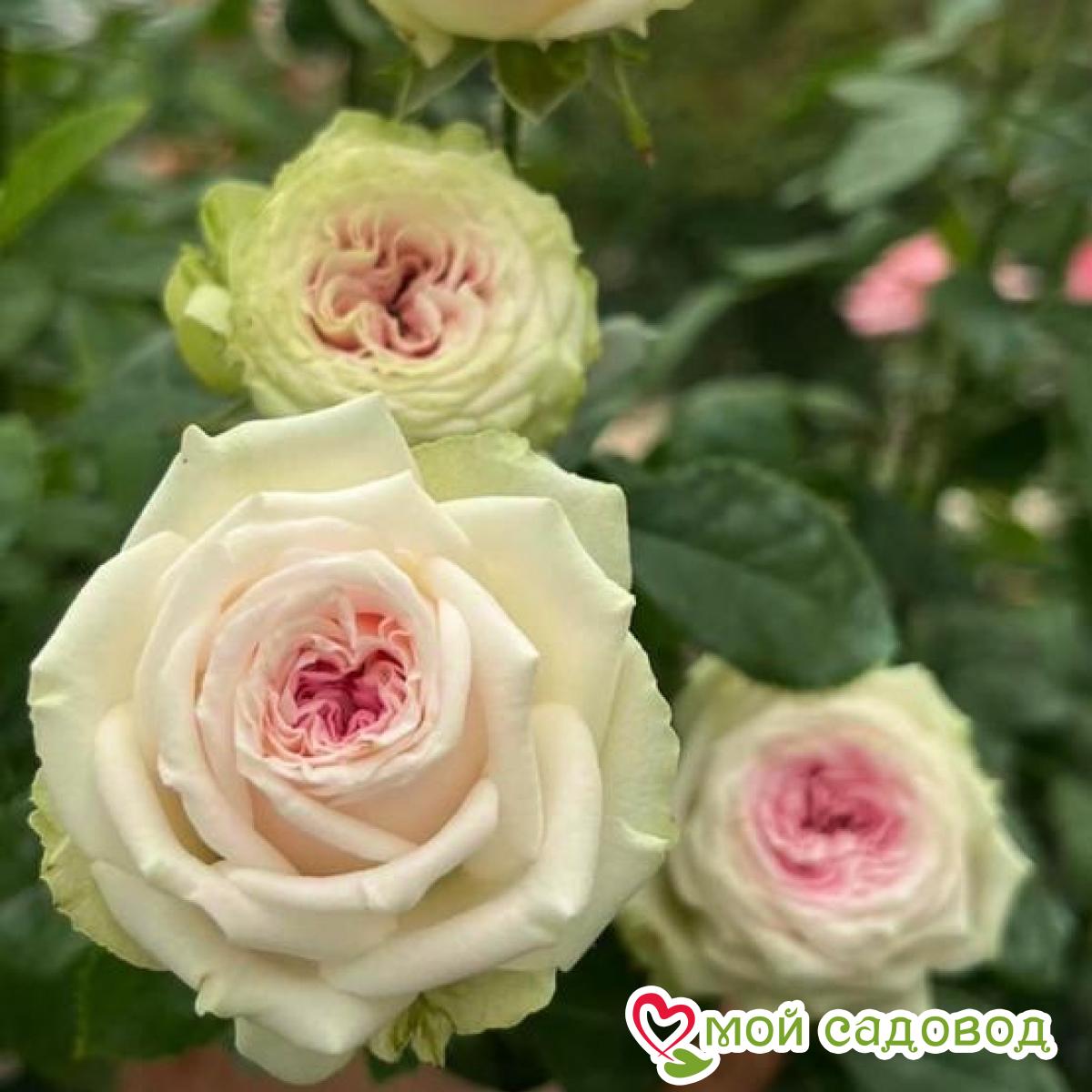 Цветки светло-желтые с вербеново-зелеными оттенками, которые с возрастом розовеют. Аромат нежный, фруктовый. Цветки крупные, 12-13 см в диаметре, шаровидные, появляются в кистях. Цветение обильное. Куст средней высоты, прямостоячий, ветвистый, достигает 100-120 см в высоту и 50-60 см в ширину. Устойчивость к заболеваниям средняя. Как хранить растения, если вы получили посылку раньше начала посадочного сезона: Если роза спит — храним в холодильнике или подвале при температуре от 0 до +4 °С, или на улице в коробке под толстым слоем снега. Если роза проснулась — прикопать в теплице или высадить в сад, обеспечив укрытие. Можно посадить розу в горшок и хранить в прохладном подвале или на балконе/лоджии, притеняя от прямых солнечных лучей. Во время хранения периодически проверяйте состояние посадочного материала. Поврежденные, загнившие части корней удалите и обработайте фунгицидом (Топаз, Фитоспорин).